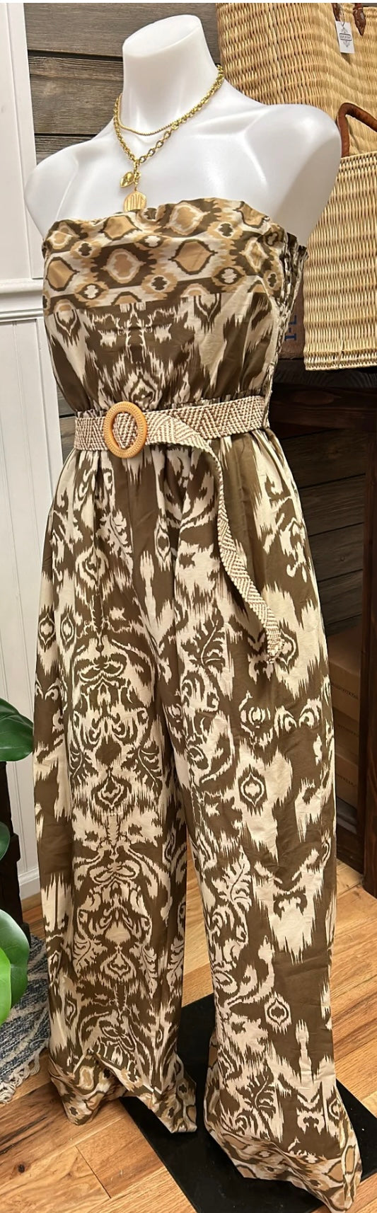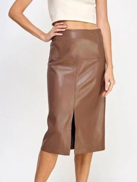 Brown Faux Leather Pants. Wide Legs With Double Buckle Belt