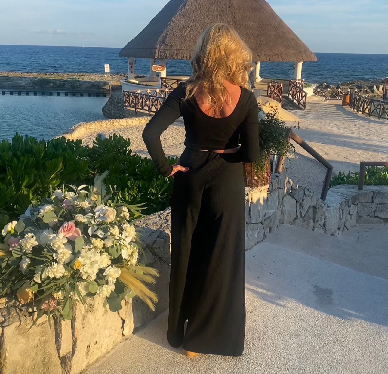 Ribbed Two Piece Wide Leg Pant Set... Cropped Top With Long Sleeves